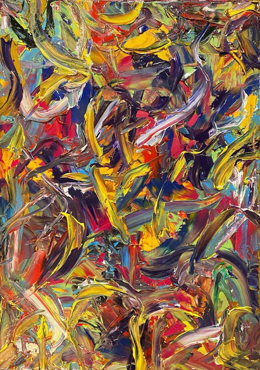 “ Le parole che esprimono al meglio il mio stile sono spontaneo, emotivo ed astratto. Il quadro non attrae per il soggetto che rappresenta ma per l’immagine in se stessa, dalla gestualita’ e il modo in cui il colore viene dato e per la vivace composizione di forme e colori. In questo modo si vivono i sentimenti che provo mentre dipingo , il colore e’ il mezzo per esercitare un emozione nello spettatore ed ognuno puo’ trovare il proprio significato guardando la tela"